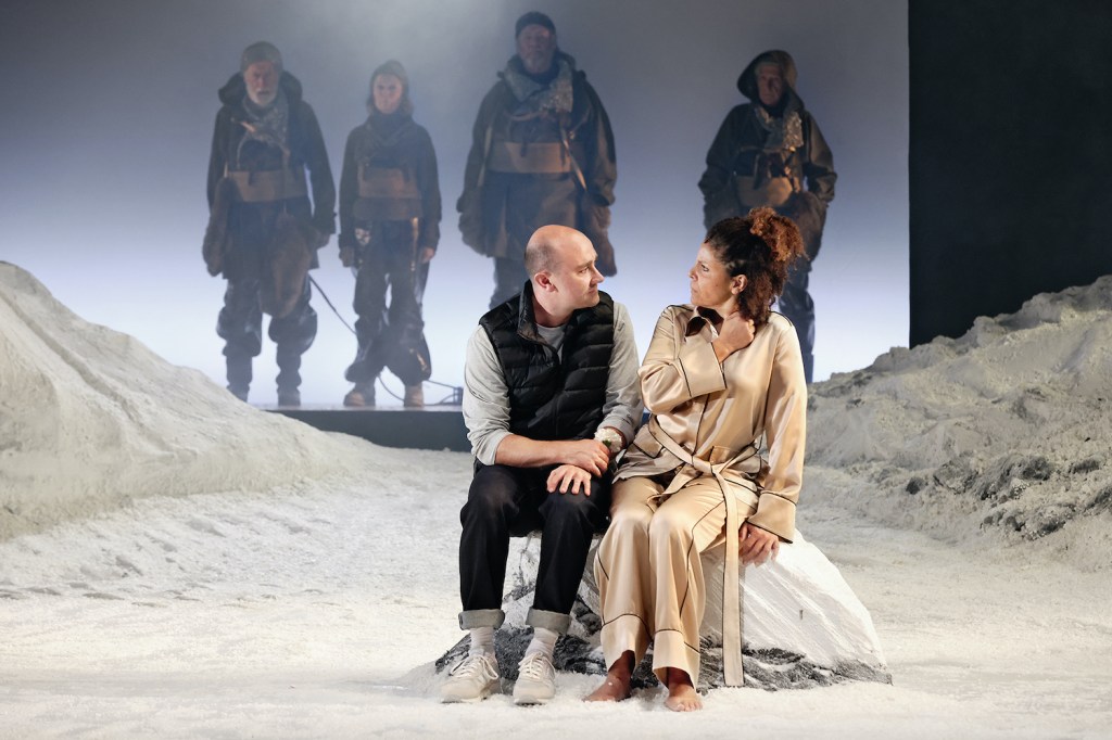 Director Paige Rattray and team of Charles Davis (design), Paul Jackson (lighting designer) and James Brown (composer and sound designer) bring the desolate, epic expanse of the Arctic to the Roslyn Packer Theatre. This may be my favourite set in a very long time. Some stunning comic touches, such as sleeping bags that descend from the ceiling, are just the icing on the cake. The entire design takes the seemingly simple and elevates it with skill and humour.