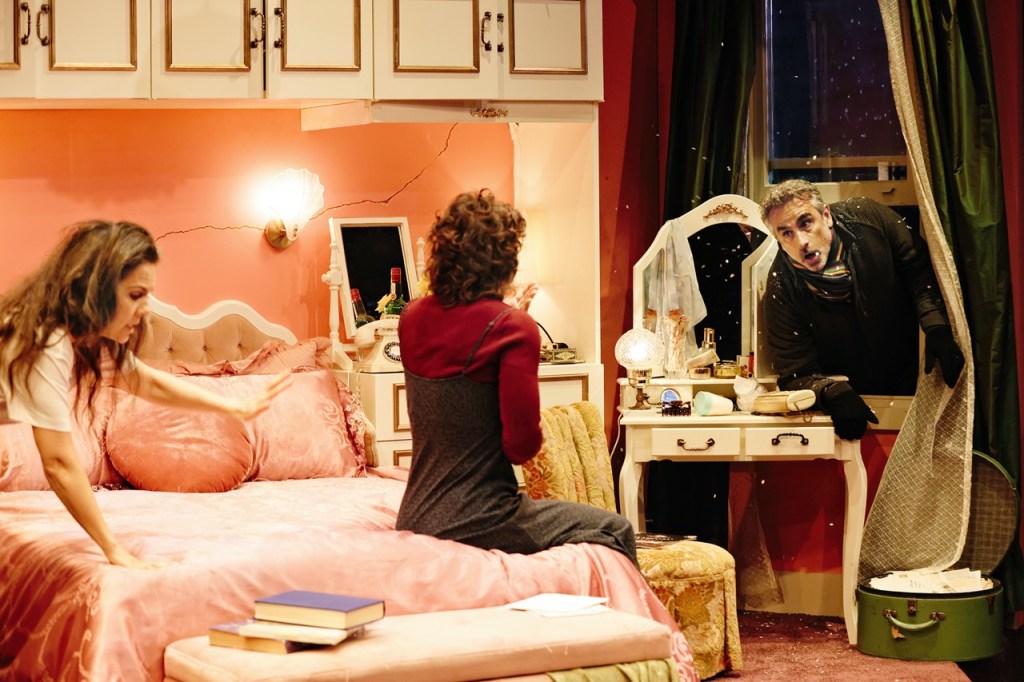 Set entirely in Violet’s bedroom, the ghost of their late mother is everywhere, from the bright coloured decor (a frighteningly realistic set by Veronique Benett) to the closet full of outdated dresses. In her grief, Mary starts to have conversations with Violet as she remembers her from her childhood, in 60s make-up and clothing.