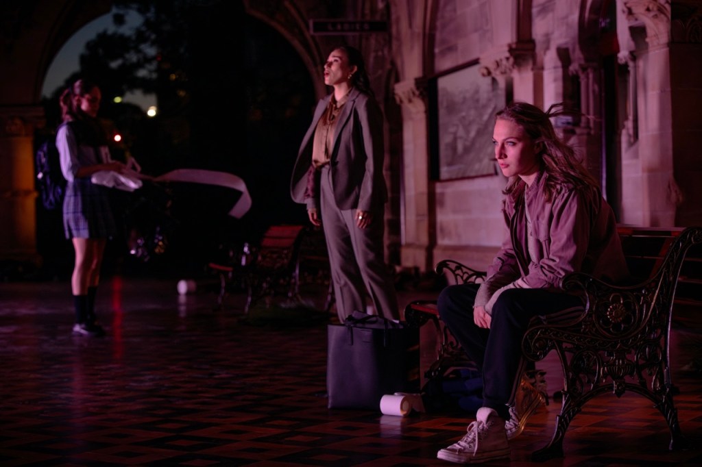 As the two schoolgirls start to wreak havoc on the unsuspecting public, the comedy mixes with the music and action together. The platform itself makes for a well resourced stage, with multiple entrances and rooms the cast can duck into at the side, while the benches on the platform serve multiple purposes. The stunning sandstone architecture is as good a set as you could imagine (the show would feel less romantic were it staged in the middle of Town Hall Station).