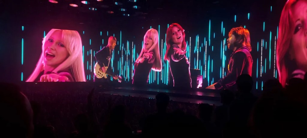 I went in wanting to watch the seams to see how these CG avatars (or ABBAtars as they are called) work… could they really appear to be on stage? The answer is yes, for the most part. But through some clever stage work it simply doesn’t matter. They’re not trying to be real, this concert deliberately jumps the shark over the uncanny valley to be both a celebration and elevation of ABBA’s legacy.