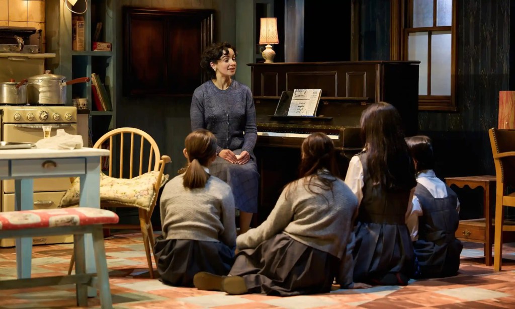 This story of a single mother who raised/is raising her four talented daughters (the play is set in two time periods), moulding them into a singing quartet ala The Andrew’s Sisters, is filled with moments of wit. Set in a guest house, in which each room is named after an American state, the core family are surrounded by a cast of peculiar characters. It’s a great setting for the story. Called “The Seaview” but featuring no view of the sea, with vaulting staircases rising high into the Harold Pinter Theatre rooftop, the place has lofty aspirations without necessarily having a solid grasp on reality.