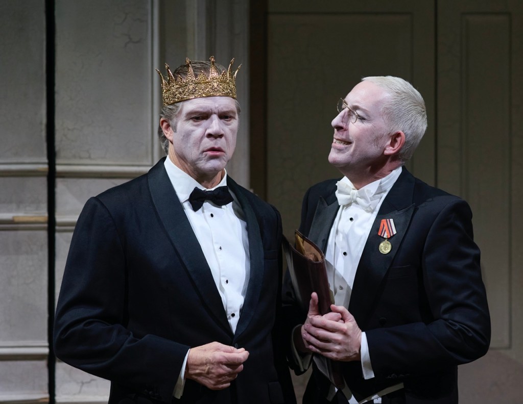 British tenor, Allan Clayton, plays Hamlet (as he has in previous productions) with a surly flare. Lorina Gore has her work cut out for her as Ophelia with a particularly technical part to sing. In a wonderful move, Dean has written Rosencrantz and Guildenstern (Russell Harcourt and Christopher Lowrey) as counter-tenors who constantly echo each other and those around them; it’s a wonderful comedic touch.