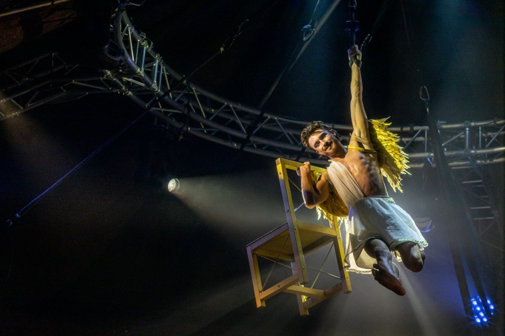 Familiar circus and acrobatic tricks are given a fresh twist and lashings of cheek as the lads flirt, flip and flash their way across the stage. Make no mistake, this show is both carnal and camp. What more do you expect from Dionysis and Cupid?
