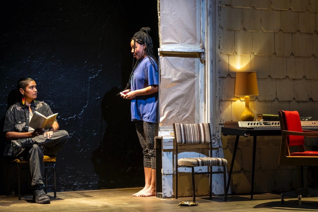 Set Designer Bob Cousins’ apparently sparse set is also deceptively subtle. The wide open space of the stage stands like the sun-bleached Great Plains, surrounded by elements of a house torn apart and reassembled, with windows and doors out of place. Morgan Moroney’s lighting gives it texture and an essential blast of heat.
