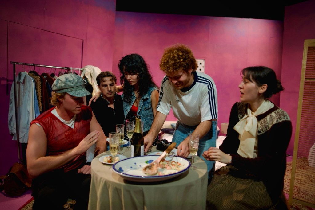 Director Clare Voda tackles the action with a light touch, which can sometimes detract from the material. There is a naturalistic realism to the performances that, while compelling and grounded, results in muddied cross-talk which becomes confusing for the audience. Scenes often feel unstaged and random (admittedly, as a late-night show at the Old Fitz, they are using the set of Amber, which brings restrictions). At times, the onstage chaos feels like genuine chaos.