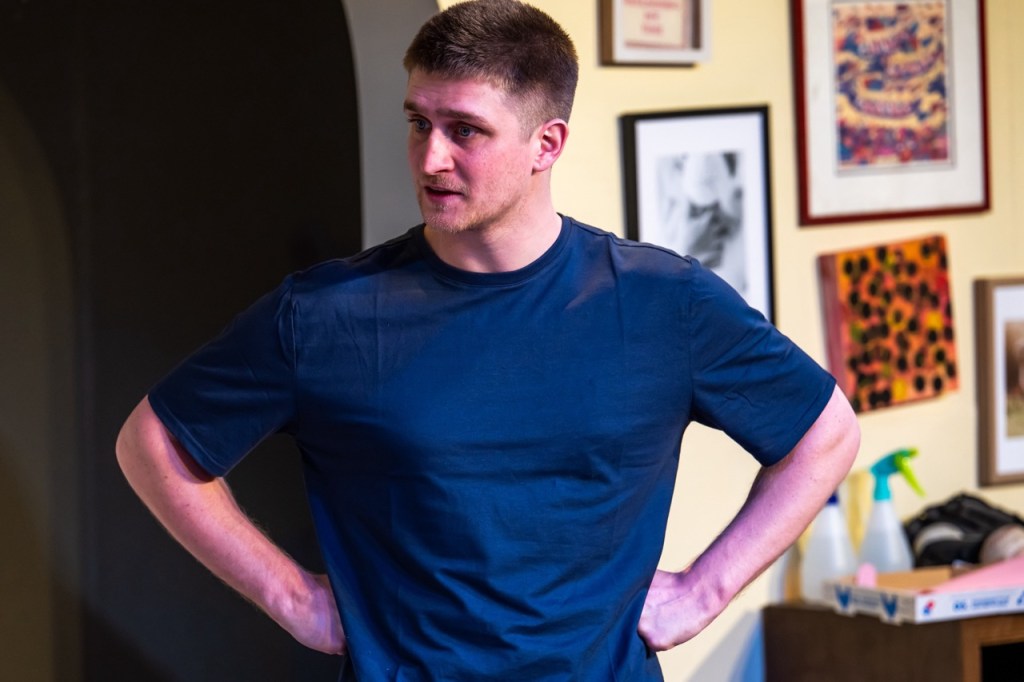 Isaac (Luke Visentin), known simply as ‘I’, returns home from a stint in the military to find his childhood house in utter chaos. Laundry litters the floor, dirty dishes clog the kitchen, and the front door is blocked by… stuff. His father, Arnold (Rowan Greaves), is now an incoherent, stupefied figure — a lump in a nightgown smeared with clown makeup. Max (Lola Kate Carlton), Isaac’s sibling, no longer identifies as his sister but as genderqueer, using ze/hir neopronouns. Meanwhile, their mother, Paige (Jodine Muir), freed from Arnold’s violent tyranny, enforces one strict rule: absolutely no cleaning. This is far from a happy household.