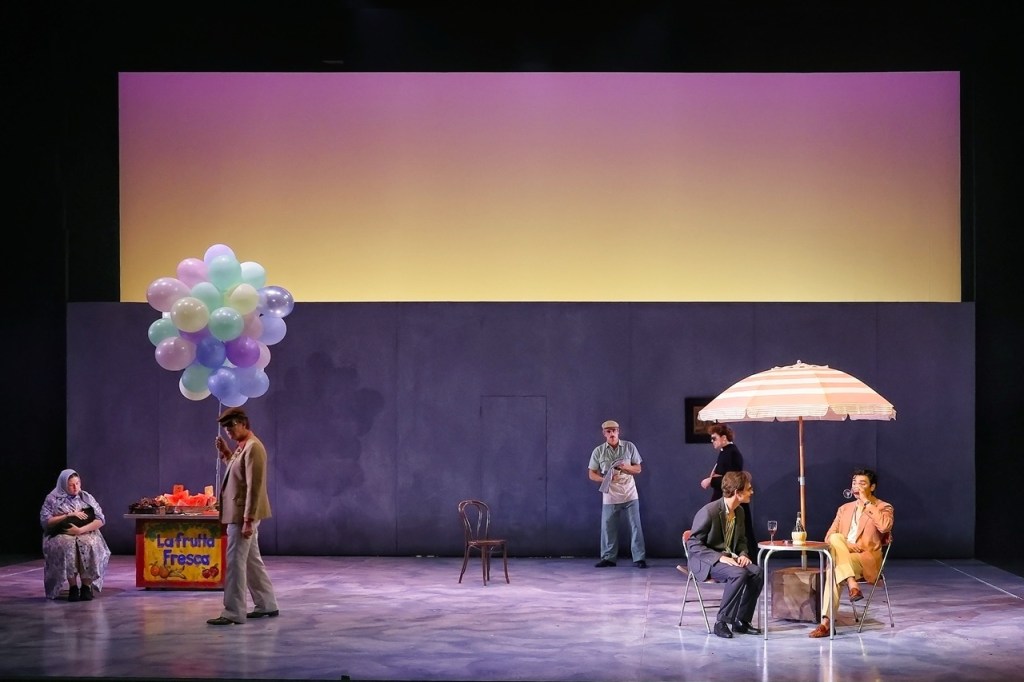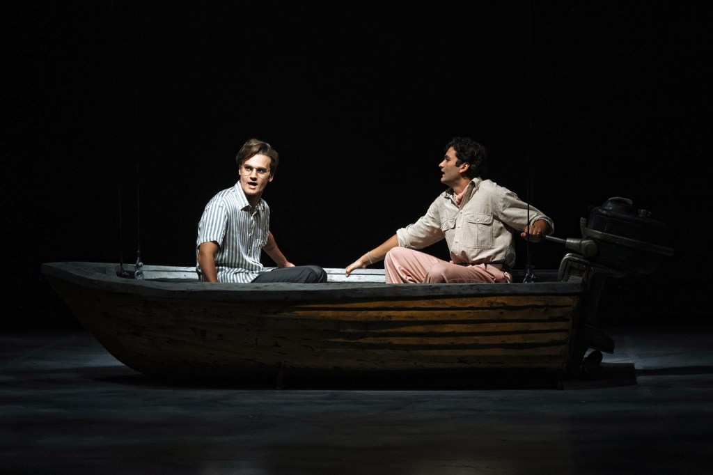 There’s a distinct visual design to Goodes’ production that strikes a bold note. When it works, it excels — such as in the moment Greenleaf and Ripley go dancing, or during the fateful boating scene — but often the imposing, stark concrete wall dominating the set sits heavily across scenes. Its ever-present threat may be brutalist chic, but for me, it flattened the tone — an expanse of mid-century modernist grey that drained the dynamism and passion from the Italian getaway.