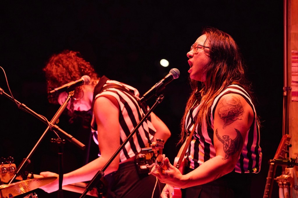 Another standout is the kick-ass live band, which delivers high-energy, atmospheric hits throughout the show. Tracks like Beastie Boys’ “Sabotage”, The Pixies’ “Where Is My Mind?”, and Tom Cochrane’s “Life Is a Highway” are performed by the tight three-piece of Joe Paradise Lui, Calliope Jackson, and Antoine Jelk, adding propulsion and grit to the action.