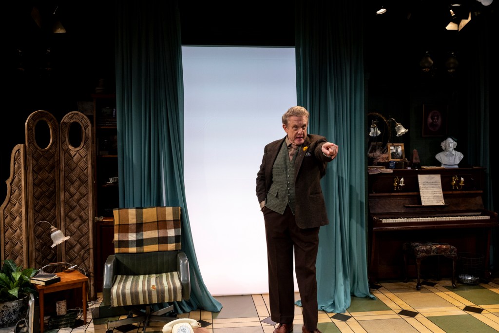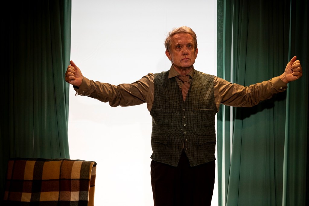 The production around him is equally rich. Isabel Hudson’s design layers nostalgia and unease with real intelligence. The sound design by David Bergman gives the space texture without ever drawing attention to itself. Brockman’s lighting is subtle until it isn’t. Greene trusts the material completely, adding moments of finesse — some nicely underplayed magic tricks — that are pure theatre.