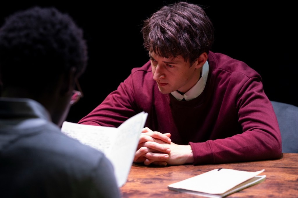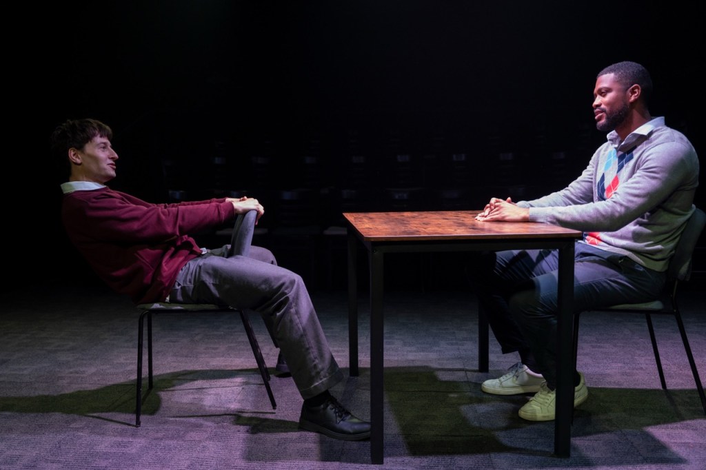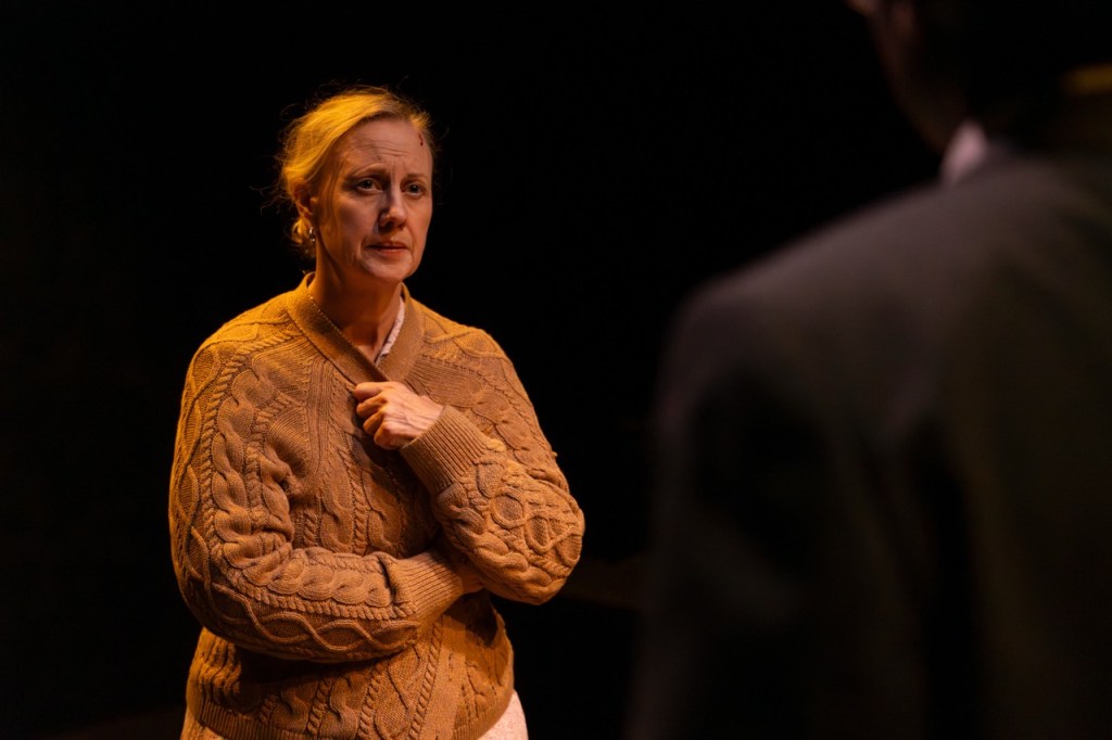 Director Kim Hardwick presents this with as little embellishment as possible. A sleek, sparse set by Victor Kalka provides a moody backdrop — essentially a table and two chairs. Charlotte Leamon’s sound design is deployed only in key moments, leaving the soundscape bare for long stretches. By not deploying the usual bag of directorial tricks to give emotional guidance, Hardwick puts the emphasis on the text and the performances to do the heavy lifting — and thankfully, this cast is more than equal to that task.