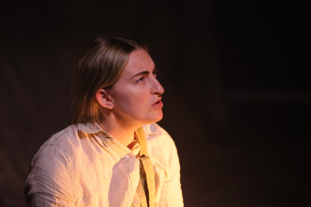 Under Patrick Klavins’ direction, with Topaz Marlay-Cole’s lighting, Jamie Hornsby’s sound design, and Bella Saltearn’s earthen set and costumes, there’s an almost rural, organic earnestness to the staging. A few props and simple blocking keep things alive without pulling focus from the heady material. It grounds us so that the elements of avant-garde can’t overpower the emotion.