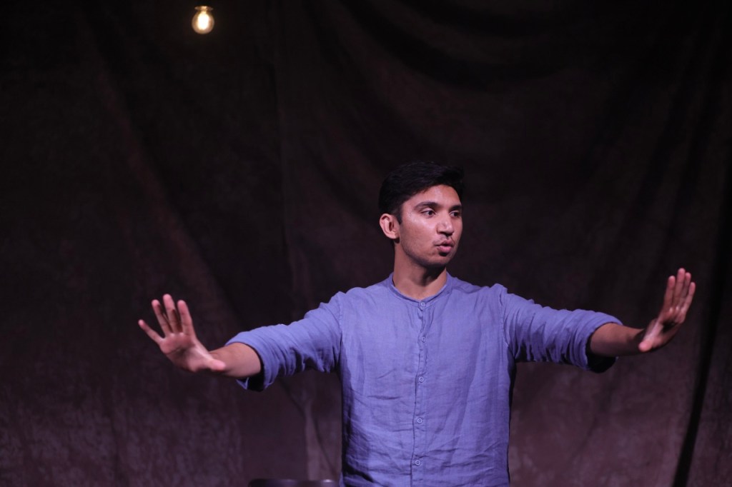 Which makes the production’s central challenge a fascinating one. Each poem is presented as a monologue by a single performer in turn — Sandie Eldridge, Grace Stamnas, Charles Mayer and Kaivu Suvarna navigating these non-linear passages as both dramatic works and spoken-word poetry. Getting the cadence right, finding the understanding underneath the language is no small ask. While they all speak with Eliot’s clear voice, each performer brings a slightly different colour to the material, giving the evening a clear sense of progression.