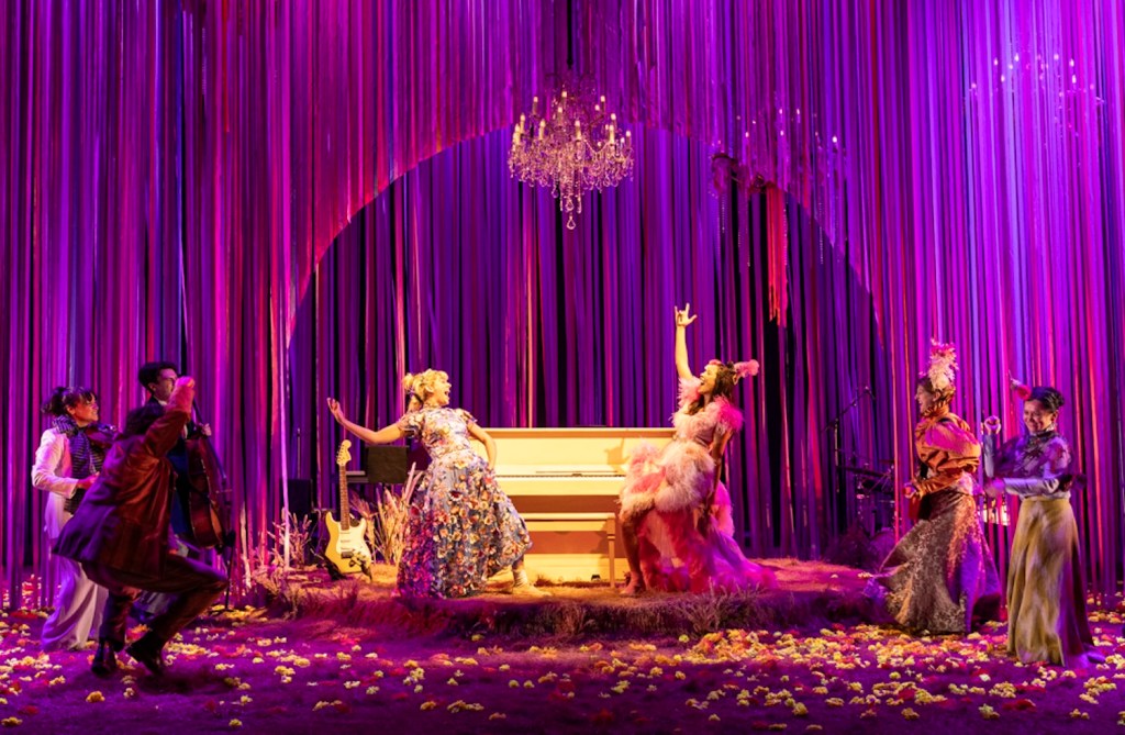 As Sybylla makes clear from the outset, this is “a yarn” — a story told directly to the audience, with the cast of actor/musicians filling the stage with movement and music, slipping between characters and instruments with complete ease. Kala Gare inhabits Sybylla’s skin so seamlessly she disappears — rambunctious and arrogant on the surface, achingly yearning underneath. Her performance is acrobatic: physically, emotionally, and vocally.