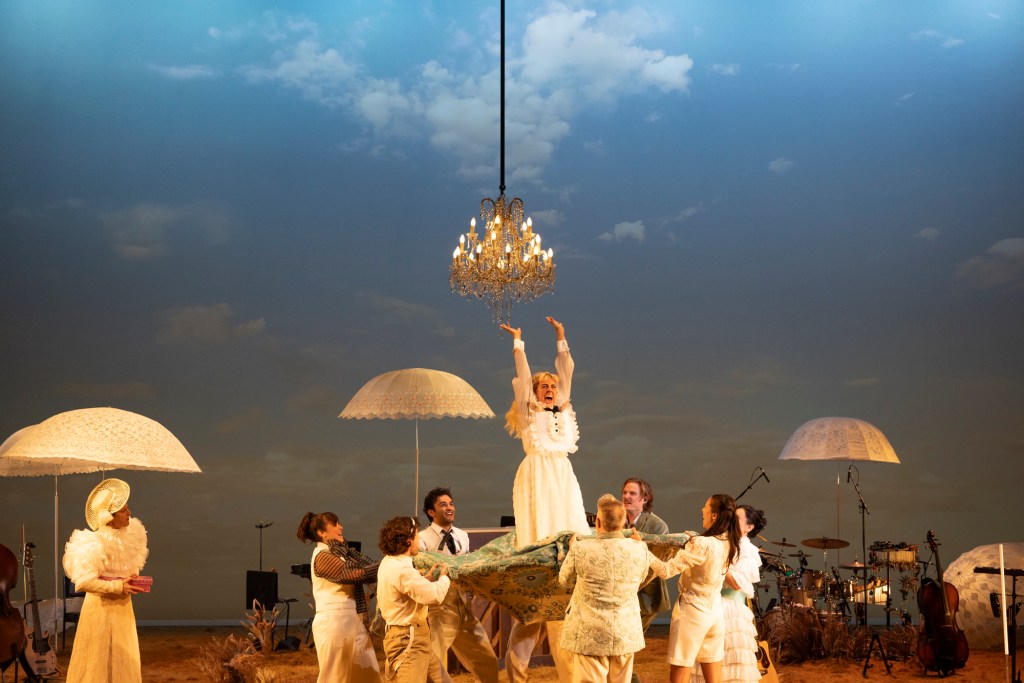 But the performance I find myself most wanting to single out is Melanie Bird’s. Across the evening she inhabits a whole host of different characters, from Sybylla’s younger sister Gertrude, a gloriously bratty M’Swat child, the cosmopolitan Blanche, and more — while also understudying Sybylla and playing a range of instruments. It is a performance of ebullient range, delivered with complete ease.