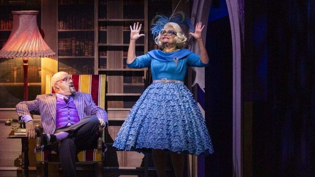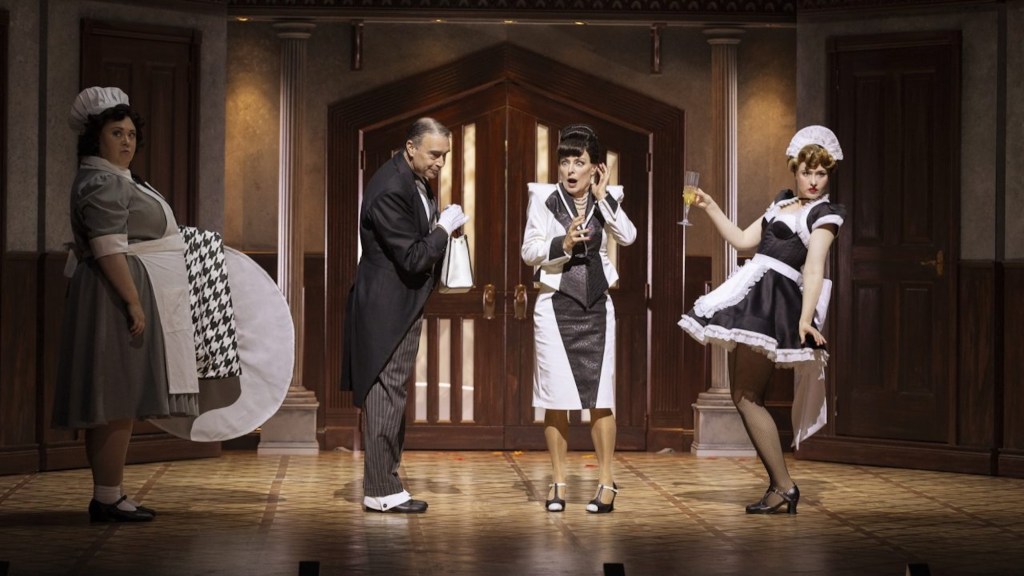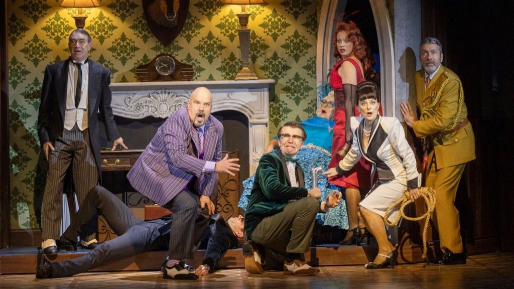 If you’re familiar with the 1985 comedic flop-turned-cult-classic film Clue, from which this wholeheartedly takes its plot and the bulk of its dialogue, then you’ll be in familiar slapstick territory. It’s one of my top ten favourite movies, the most rewatchable kind of comedy — full of camp excess and ridiculous plotting, plus one of Madeleine Kahn’s all-time great performances. Here the action has been relocated from America to “Downton Stabby” England and you’ll barely notice the difference.