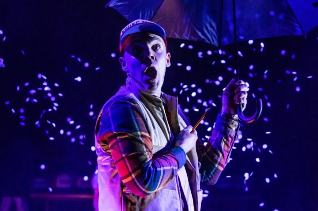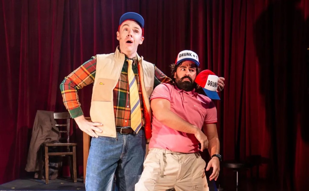 As the two leads simultaneously play dozens of characters, made clear by the use of different caps, they channel an insane amount of zany slapstick energy. Shout out to Shannon Burns’ choreography, which gives them both a real workout. Even when things go wrong (as they did the night I saw the show) it just adds fuel to their comedy engine. I could be wrong, but it looks like they’re both having as much fun as the audience is.