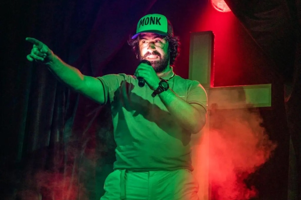 There’s a real art to putting on a show that is supposed to look intentionally ramshackle, while still giving the audience the level of quality they demand for the ticket price, and Gutenberg hits the right level. Lochie Odgers’ set appears to be simple theatre drapery but has some tricks up its sleeve. Liam Roche’s sound design is incredibly sharp (the timing was so impeccable I was wondering what other tricks were being used). And Véronique Benett’s lighting gives the show a notable variety.