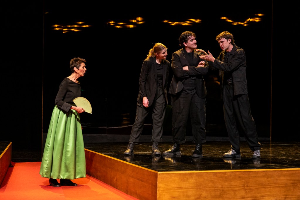 Shan-Ree Tan, Deborah Jones, Alexandra Travers, Brendan Miles, Saro Lepejian. Photo: Robert Miniter Photography. I was almost disappointed there wasn’t a sly nod to STC’s fateful 2023 production of The Seagull, which caused so much needless commotion and cost the company dearly (maybe there was and I just missed it). Still, the humour isn’t there just to wink at us; it opens broader questions about art, authenticity, and the pretensions baked into a form we all keep coming back to.