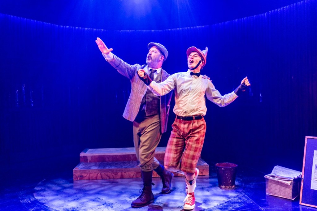 Kramer’s score is as sharp as his script. Long established as a go-to musical director, he brings skill and depth of musical knowledge to a score that’s high-energy, smart, and littered with gags — a mash-up of Thoroughly Modern Millie, The Great Gatsby (both Baz Luhrmann’s film soundtrack and the current Broadway show), and the tone of Operation: Mincemeat. There’s palpable passion running through this music — give me a cast recording ASAP, please.