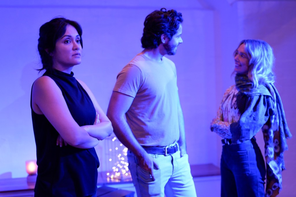 But it isn’t the paradise Evangeline expected. Sid is suspicious of her, Helen is tripping on mushrooms, and there are signs that something is wrong with nature as their commune grows unnaturally hotter. Then an oversized SUV delivers the self-absorbed Gen Z man-child Adam (Fraser Morrison), full of grand plans for this tract of land…